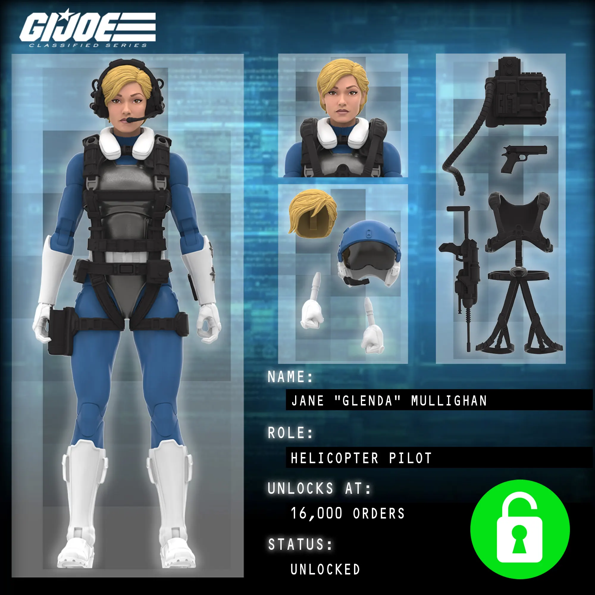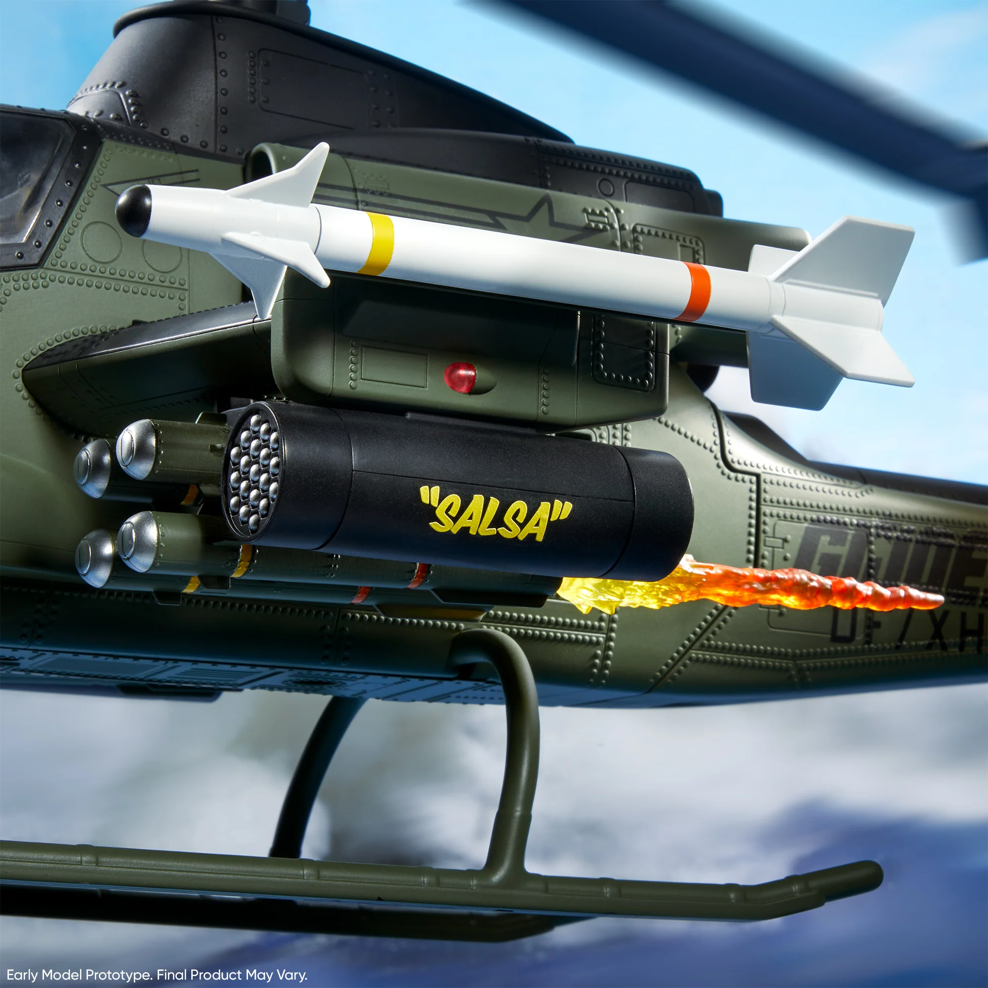 While on a covert mission infiltrating Cobra Island, our G.I. Joe operative uncovered secret plans by Cobra to unleash a fleet of heavily armored tanks in their bid for world domination. That intelligence prompted G.I. Joe High Command to authorize commissioning HasLab developers to mass produce a Joe vehicle with significant counter-strike capabilities. The results of that collaboration are the very first G.I. Joe Assault Copter Dragonfly (XH-1) in 6-inch scale.